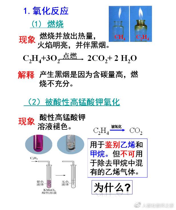 在学生大胆猜测后,进行验证,一 一讲解以上问题使学生对乙烯的化学性质进行有效学习。(此处PPT内容)
