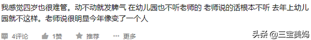 到了四岁的时候,孩子接触世界的范围更加广泛,遇到的挫折也更多了,但是心里能量还比较弱,所以孩子就会表现的情绪不稳定,行为粗野,还时常胡闹,这个时候孩子最爱做的事情就是拒绝别人的要求,直接和成人对抗,也不会顾及别人的情绪。所以有人称为忍无可忍的四岁。