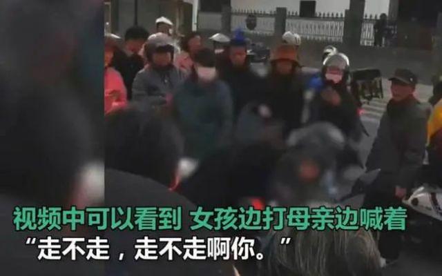 视频里,我们看到,母亲没有任何责骂孩子的生气表现,她是很聪明地激发了群众的情绪,希望利用群众的力量,压抑住自己的女儿。