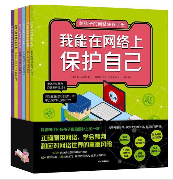 在《给孩子的网络生存手册》这套绘本中,包含了《我的网络世界说明书》《我能在网络上保护自己》《我懂得网络社交的规则》《我知道如何正确使用网络》《我不会沉迷网络世界》《数字化的未来,我能胜任!》6本书,涵盖6大网络主题,包括超过60个模拟场景、160条网络安全知识加风险应对办法。