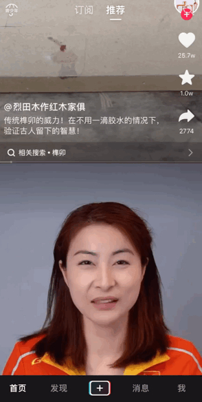 我登录的时候,首页推荐给我推荐了几个视频:榫卯结构科普、郭晶晶的视频、运动小知识、趣味科普和简笔画,等等。