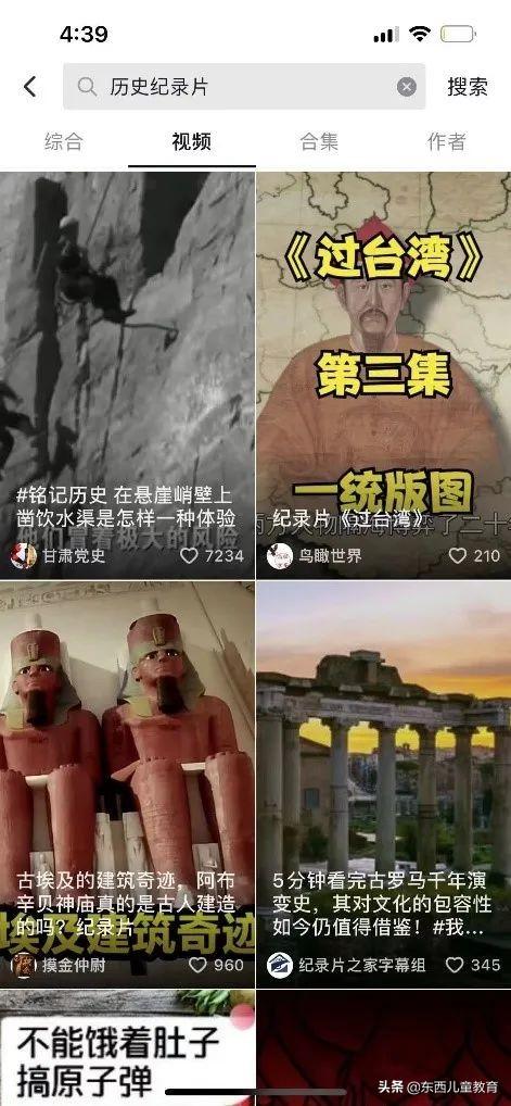 还可以看和“历史纪录片”相关联的博主,但是搜索到的博主的内容,只会显示系统认为适合孩子看的一部分内容。比如下面这个博主,搜索出来就只有一个视频。