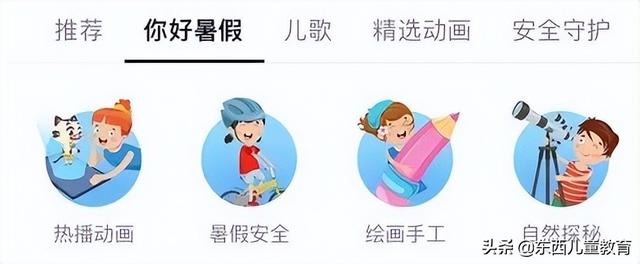 比如“你好暑假”下面就有这些分类,孩子可以去找自己喜欢的内容。