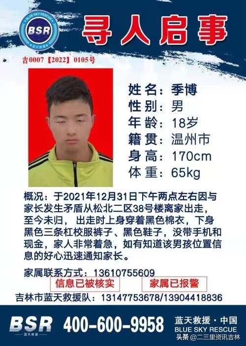 吉林市蓝天救援队帮助发布寻人启示