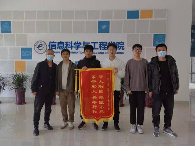 3月3日,将少年送回老家的父亲也再次回到了济南,带着一面锦旗到了山东师范,再次向四个生道谢。
