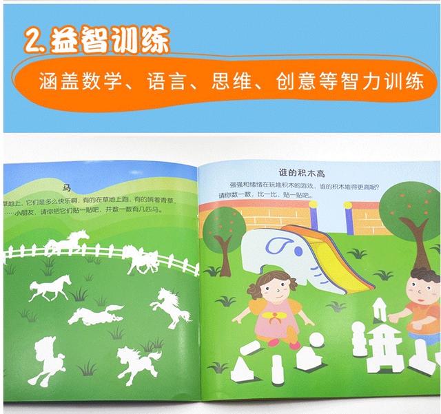 关于书籍,特别是比较好动的孩子,我推荐贴纸书。帖子书可以有效提升孩子专注力,为什么呢?因为孩子原本专注力就是比较短,而贴纸书通过游戏的方式,让孩子在动手又动脑的过程中,一边玩一边思考,不知不觉孩子会被书中的内容所吸引,从而达到提升专注力的效果。