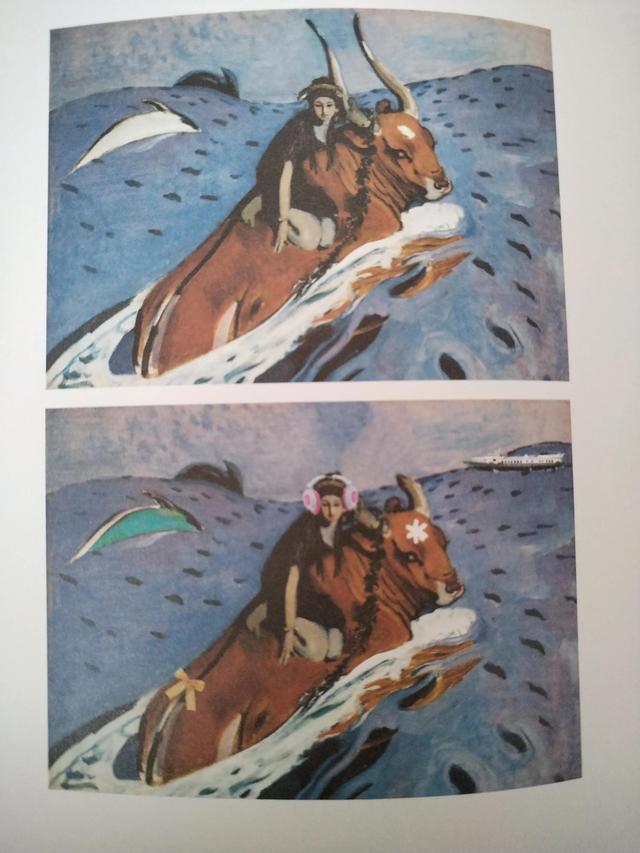 在这两幅图中,哦,是一幅很有名的名画,但是我们一眼就被能看出来是赝品,因为当中有六处不相同的地方。