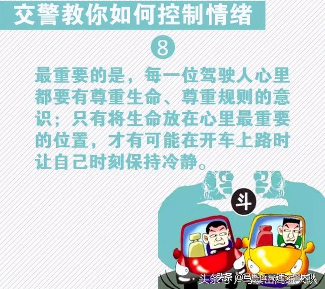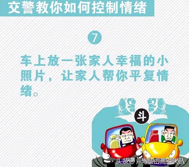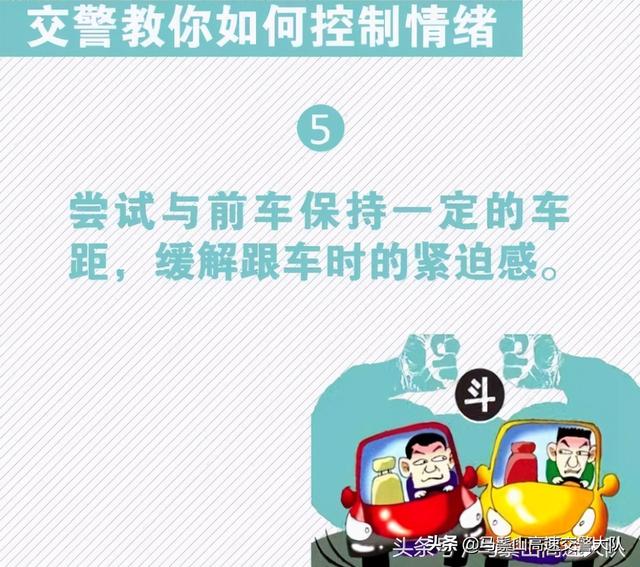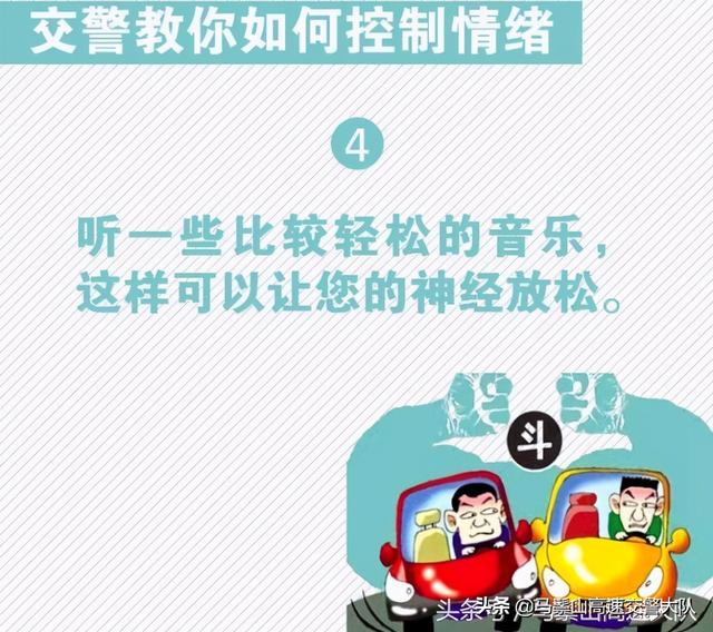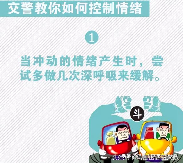 路怒症,根源于驾驶人暴躁、愤怒、冲动的情绪。想要防范它的发作,也要从情绪上寻找对症的解决办法,最根本的是驾驶人要加强个人的情绪管理能力,善于控制情绪和调节心态。对此,交警给驾驶人支招,教您如何避免被路怒情绪控制。